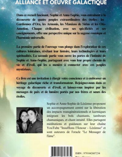 Alliance et Œuvre Galactique est bien plus qu’un livre : c’est une invitation à plonger dans un univers où l’amour, la lumière et les connexions galactiques se rencontrent. Ce livre raconte notre parcours de vie, nos expériences spirituelles, et les enseignements reçus de dimensions supérieures.